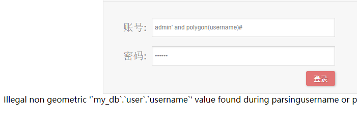 这里提一个报错注入新姿势,如果知道列名想爆出当前表名,可以使用polygon,比如