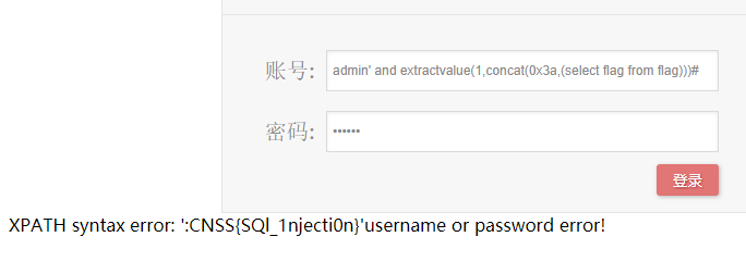 密码填1,然后就没有提示错误了,于是就可以对密码进行盲注. 帐号填