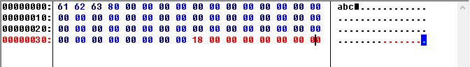 abc三个字母,即3字节,24位,十六进制是0x18,所以填个18,后面补0x00.