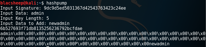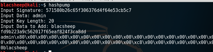 然后使用hashpump工具得到的结果如图
