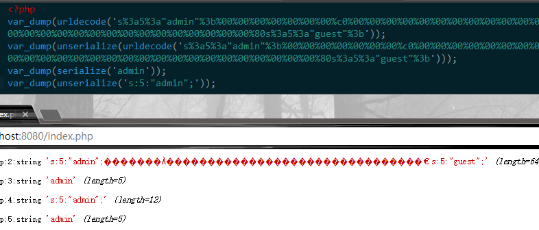本来长度扩展攻击放在最后的一段数据因为反向到前面,又因为反序列化的小漏洞,直接返回了admin