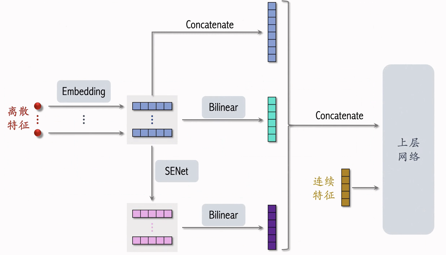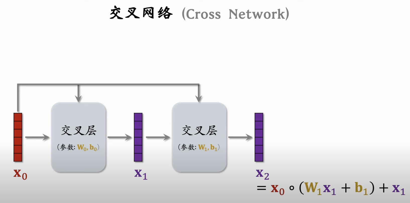 可以增加模型复杂度并提升模型性能, 其本身可以用在召回或者排序中的所有神经网络层里面. 交叉层公式如下:
