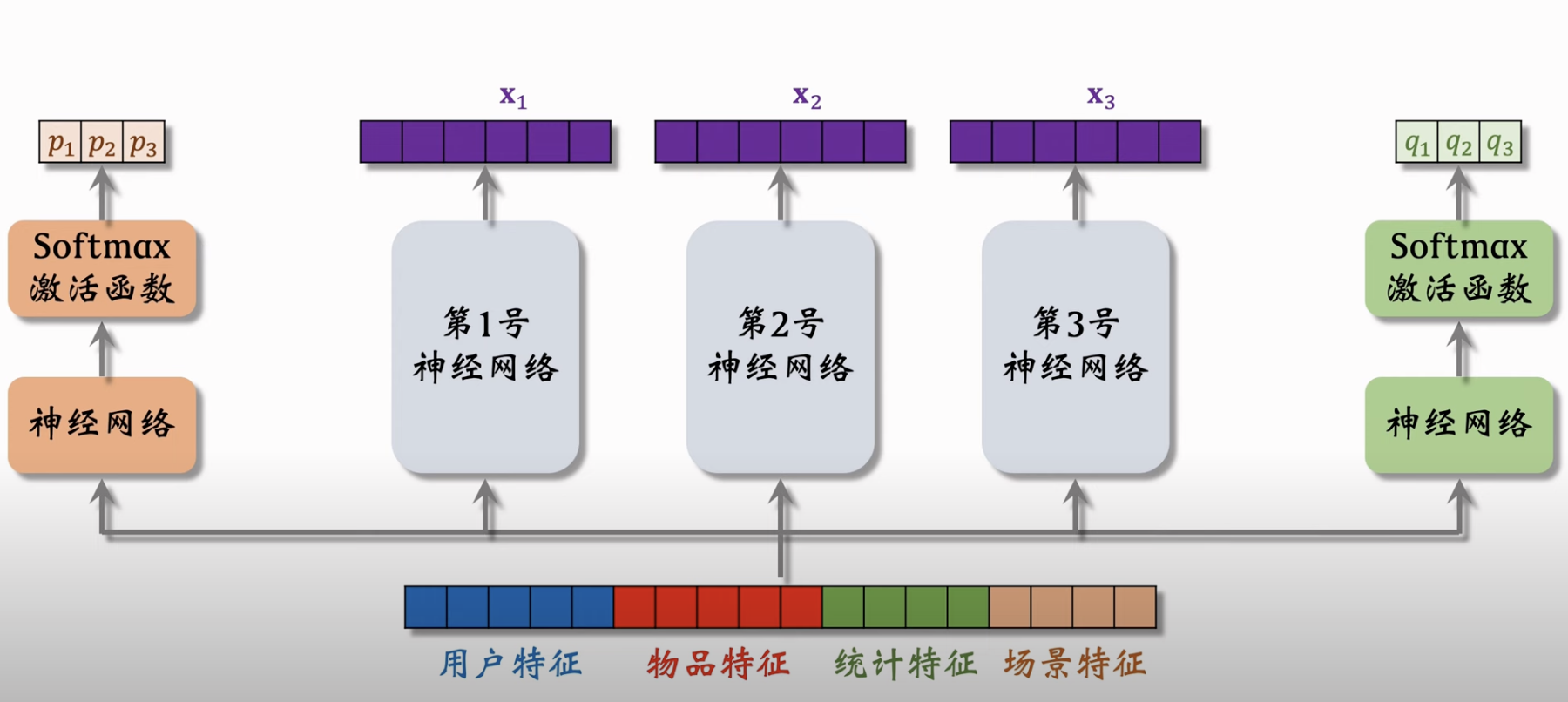 说人话就是输入特征输出n个expert向量, 然后生成指标数量个权重