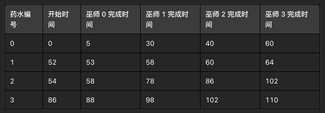 classSolution: defminTime(self, skill: List[int], mana: List[int]) -> int: n = len(skill) s = list(accumulate(skill, initial=0))